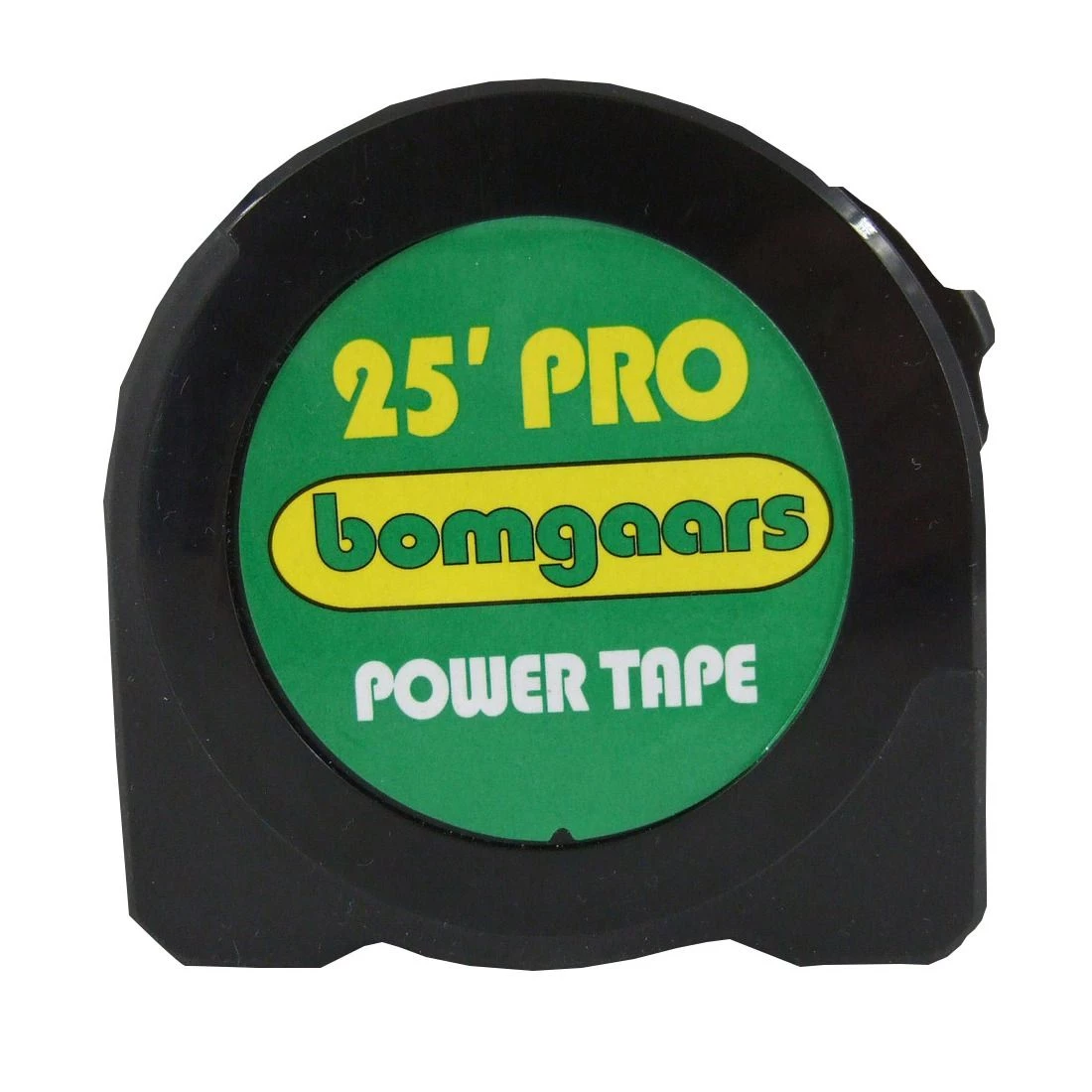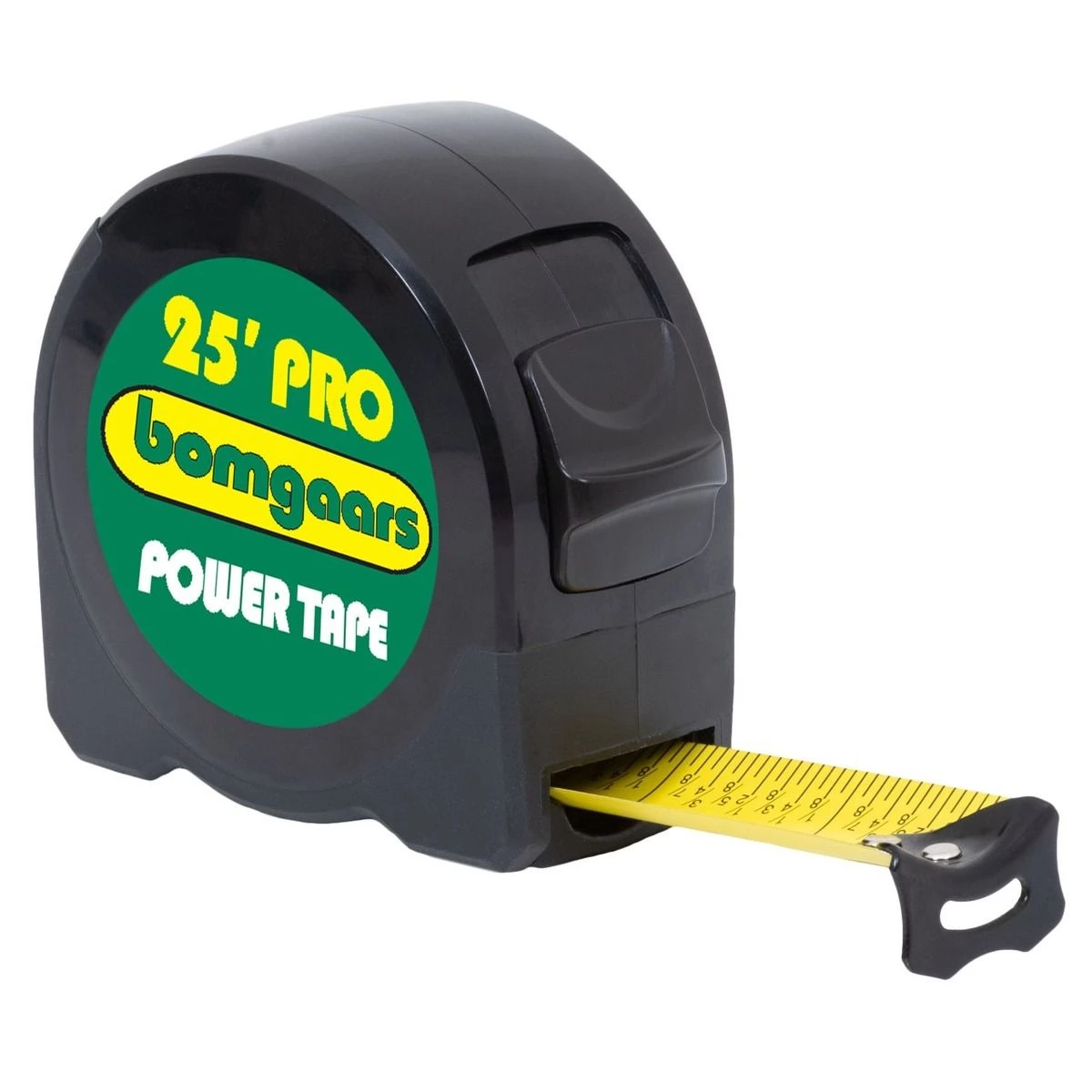 Johnson Level’s private-brand 25 FT tape measure. It offers easy to read fractional graduations, enlarged digits from 0 IN – 12 IN, triple riveted tip, has a powder coated steel belt clip, and impact absorbing TPE co-molding.