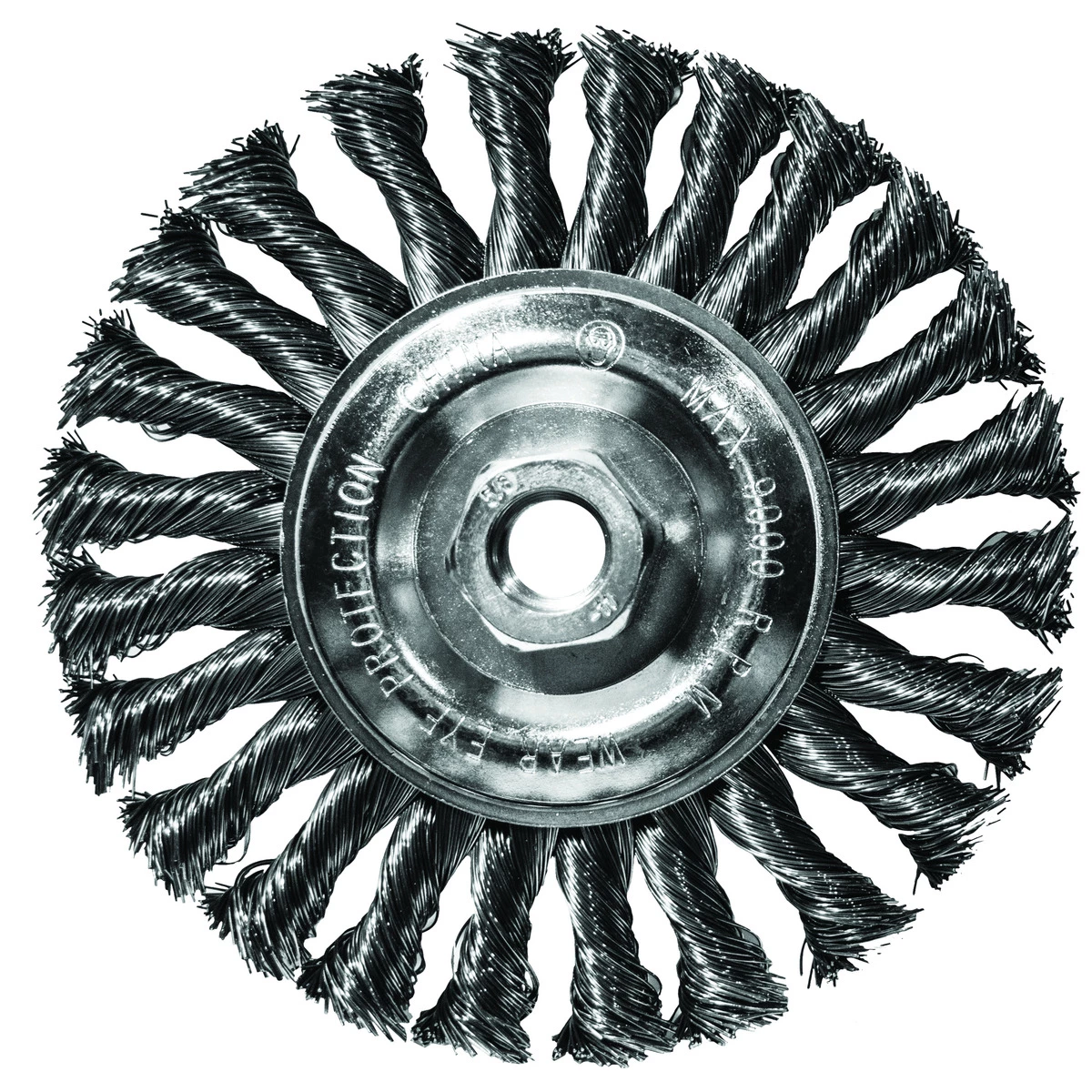 WIRE WHEEL COARSE CABLE TWIST 5″ 5/8 X 11 ARBOR SAFE RPM 12.500Industrial Wire Brush For Angle Grinders. Century’s Industrial Wire Brushes Are Made From High Quality Steel That Is Crimped, Knotted Or Twisted For Heavy Grinding Applications. Solid Ring Construction Ensures Our Industrial Wire Brushes Run Smoother, Longer With Less Vibration. Excellent For Removing Heavy Surface Corrosion And Weld Splatter. Industrial Wire Brushes Are For Angle Grinders With 5/8″-11 Threads. Adapters Are Available For Other Grinder Arbors.