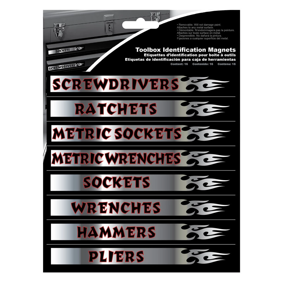 Organize your toolbox using the Toolbox ID Magnets. Easy to apply to your toolbox. 16 options from pliers to sockets. Made in the USA