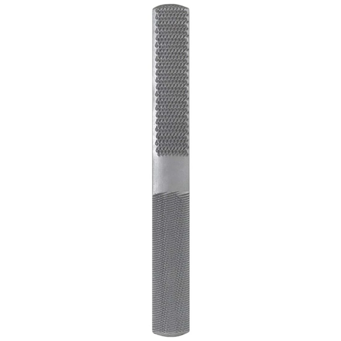 - 4-in-1 tool features a both a flat and half-round rasp and a flat and half-round course fileHalf-round wood rasp for enlarging round surfacesFlat wood rasp for rapid stock removalHalf-round file for smoothing curved surfacesFlat file for smoothing curved surfacesPrecision engineered to provide maximum gram removal per stroke and amazing longevity4-in-1 tool helps to reduce the number of files needing to be carried to a jobAlways clean your files and rasp when finished using a file cleaning brush and store in a dry placeUse with caution4-in-1 combination file and wood raspMachine milled for precision material removalGeneral purpose wood rasp/file