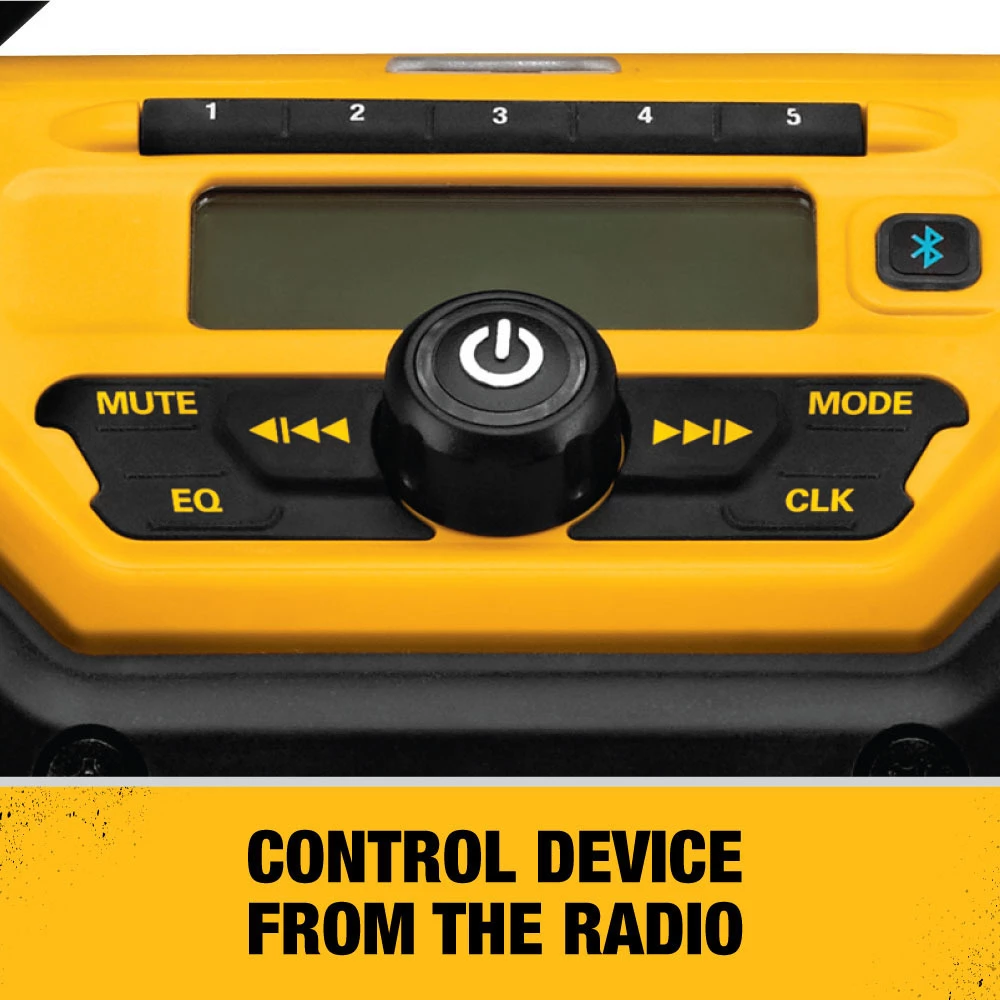 The DCR025 is designed to be the most versatile jobsite radio charger on the market. The unit is able to run off and charge DEWALT slide pack battery packs including 20 V and FLEXVOLT packs at 3 A when plugged into an AC outlet. The unit is designed to include woofers, tweeters and air ports to provide clear and rich sound at all volume levels. An over sized device storage box protects devices from work site conditions and includes an aux and 2.1 Amp USB charging port for convenient device charging. 2 AC power outlets on the side of the unit allows you to plug in additional tools or chargers without occupying additional outlets on the wall. Avrom (Audio visual remote control protocol) allows you to control your device from the radio interface so you can keep the device in a safe place and skip to the next song or hit replay on the radio interface.