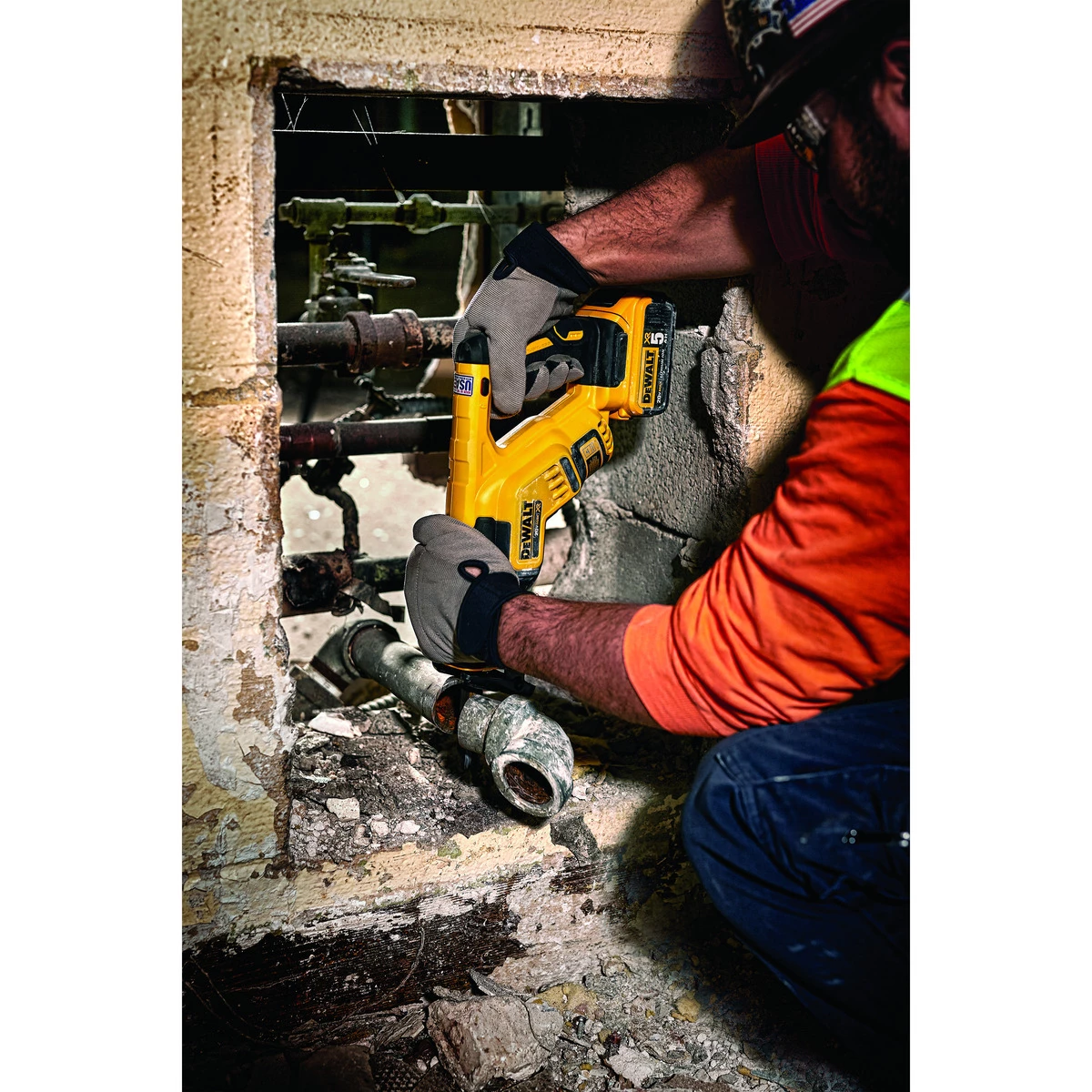 The DCS367P1 20V MAX XR compact reciprocating saw has a compact and lightweight design for making cuts in confined spaces like in between studs. The brushless motor helps to provide long run time to get the job done. With a 1-1/8 In. stroke length and a variable speed trigger delivering up to 2,900 strokes per minute, this saw is fast and efficient. It also features a keyless, lever-action 4-position blade clamp for quick and easy blade changes in four directions for a variety of applications including flush cutting. A bright LED light is included to illuminate dark work areas.