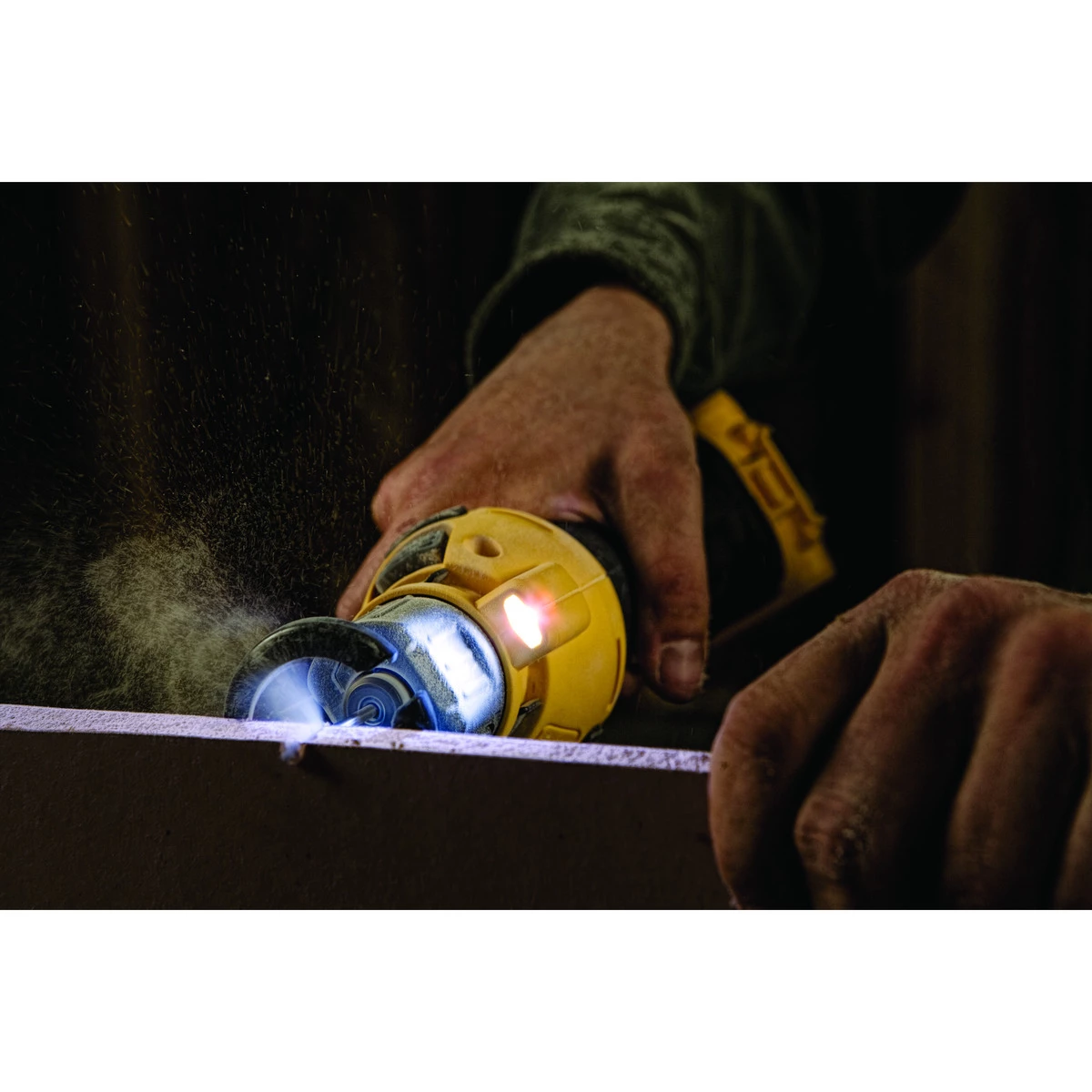 DEWALT 20 V MAX cut-out tool. Tool-free bit change allows for fast and easy bit changing – without a wrench. 26,000 RPM motor provides more cutting power. Dust-sealed switch protects against dust ingestion for longer tool life. Bright LED light illuminates dark work surfaces for accurate cutting.