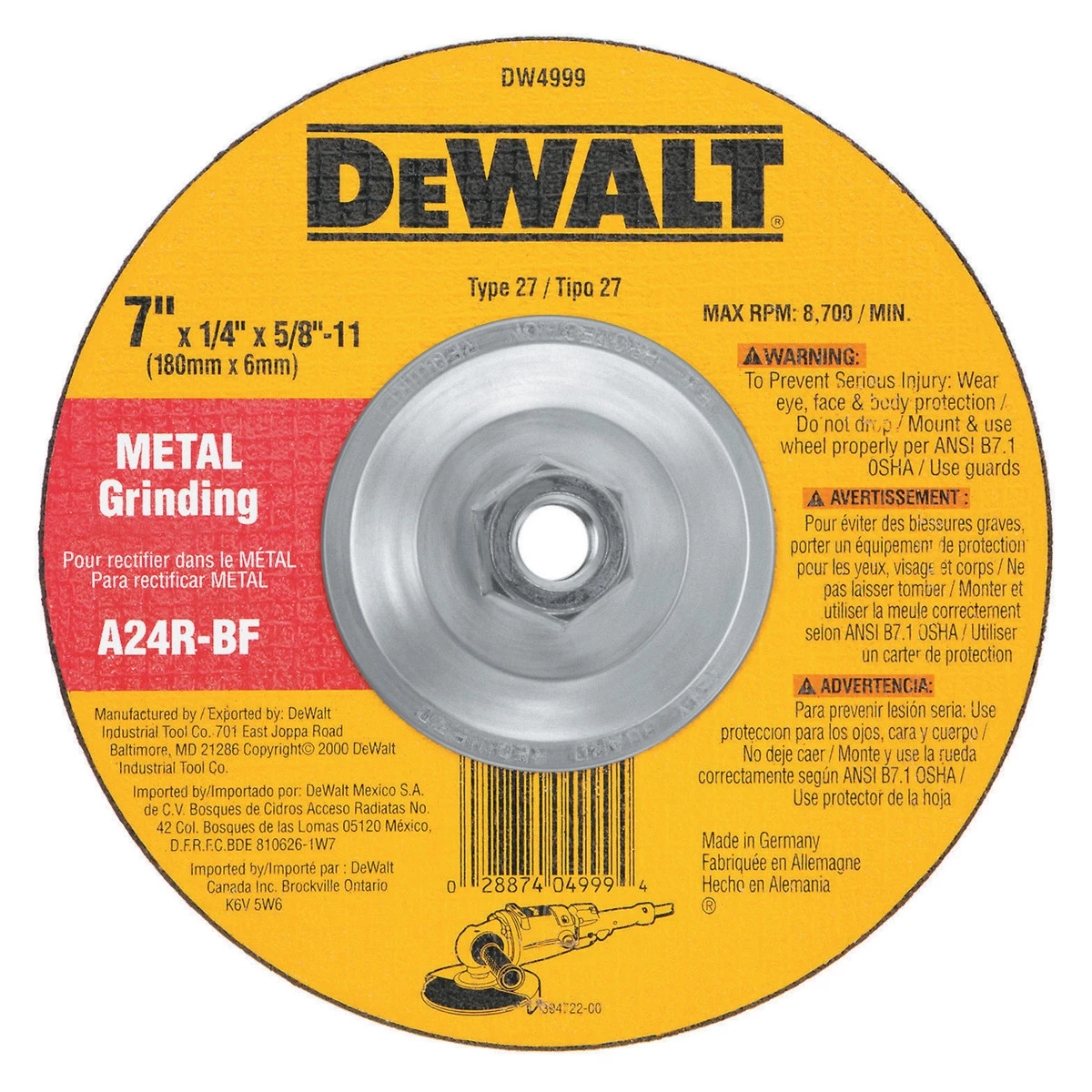 General purpose cutting/grinding wheel, 3 full sheets of fiberglass for durability. Use of 100% virgin grain for enhanced removal, ideal for low angle and vertical grinding. Aluminum oxide #24 grit, for heavy duty cutting and grinding of ferrous.