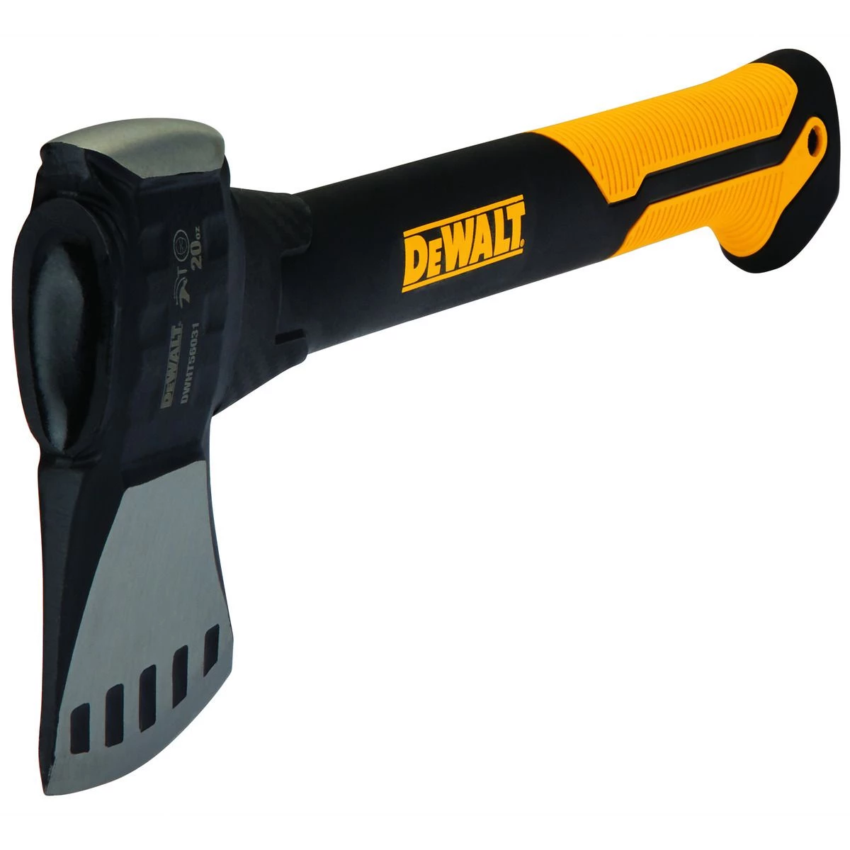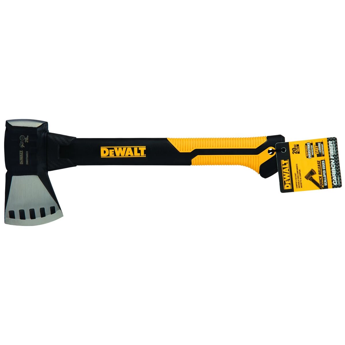 This 20 oz. Exo-Core camper’s hatchet is part of the line of axes launched by DEWALT® designed to withstand harsh forestry environments and to make the user’s job easier. With a hollow, light-weight handle, swings are quicker and more balanced for deeper, easier cuts. Scalloped cutting edges easily cut into wood and release from material. These have our carbon fiber composite overstrike to protect the most vulnerable part of the tool.