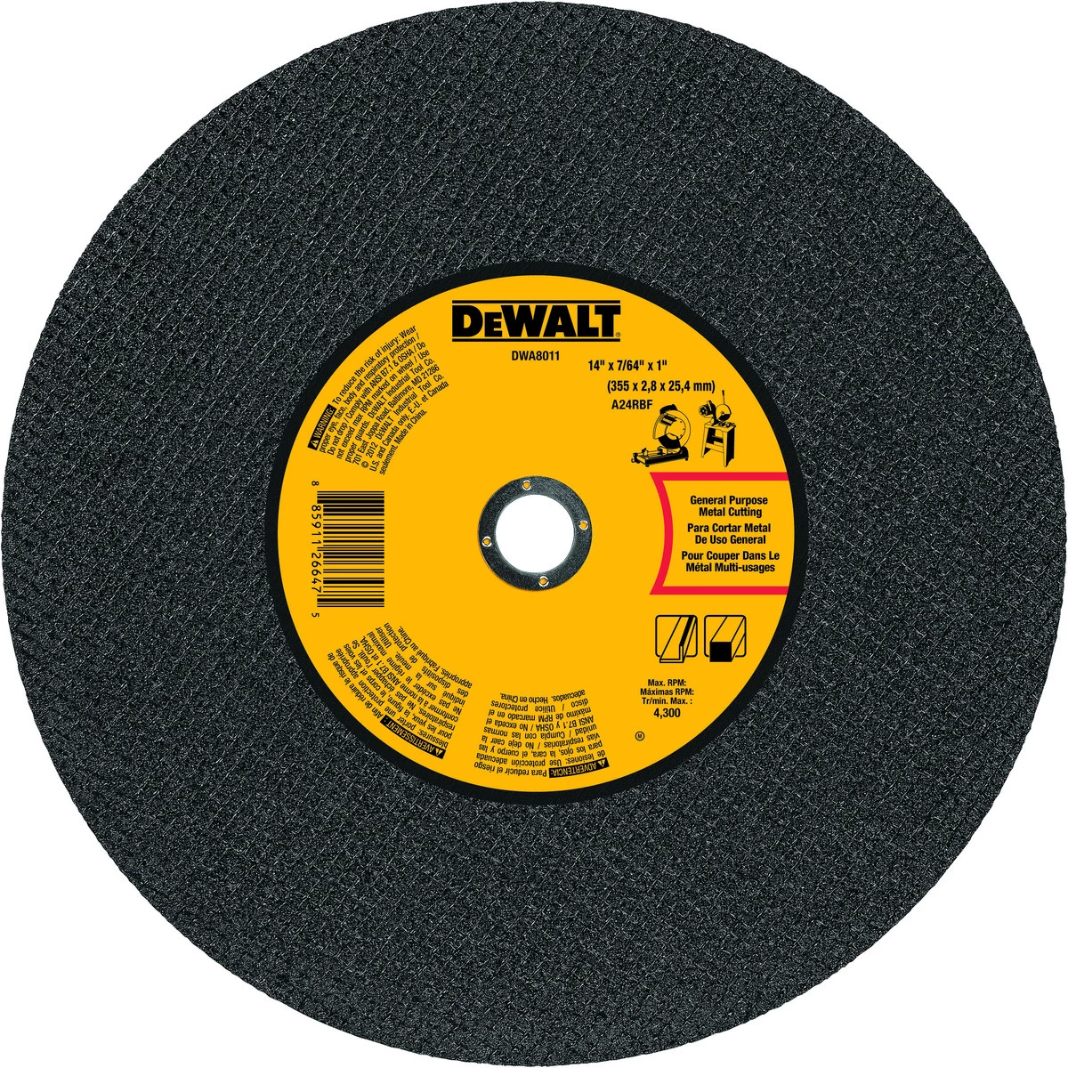 With a softer formulation for expedited cutting, DEWALT type 1 metal fast cutting chop saw wheels feature high grain concentration for aggressive cuts and smooth-running wheels. 2 full sheets of fiberglass offer durability and safety.