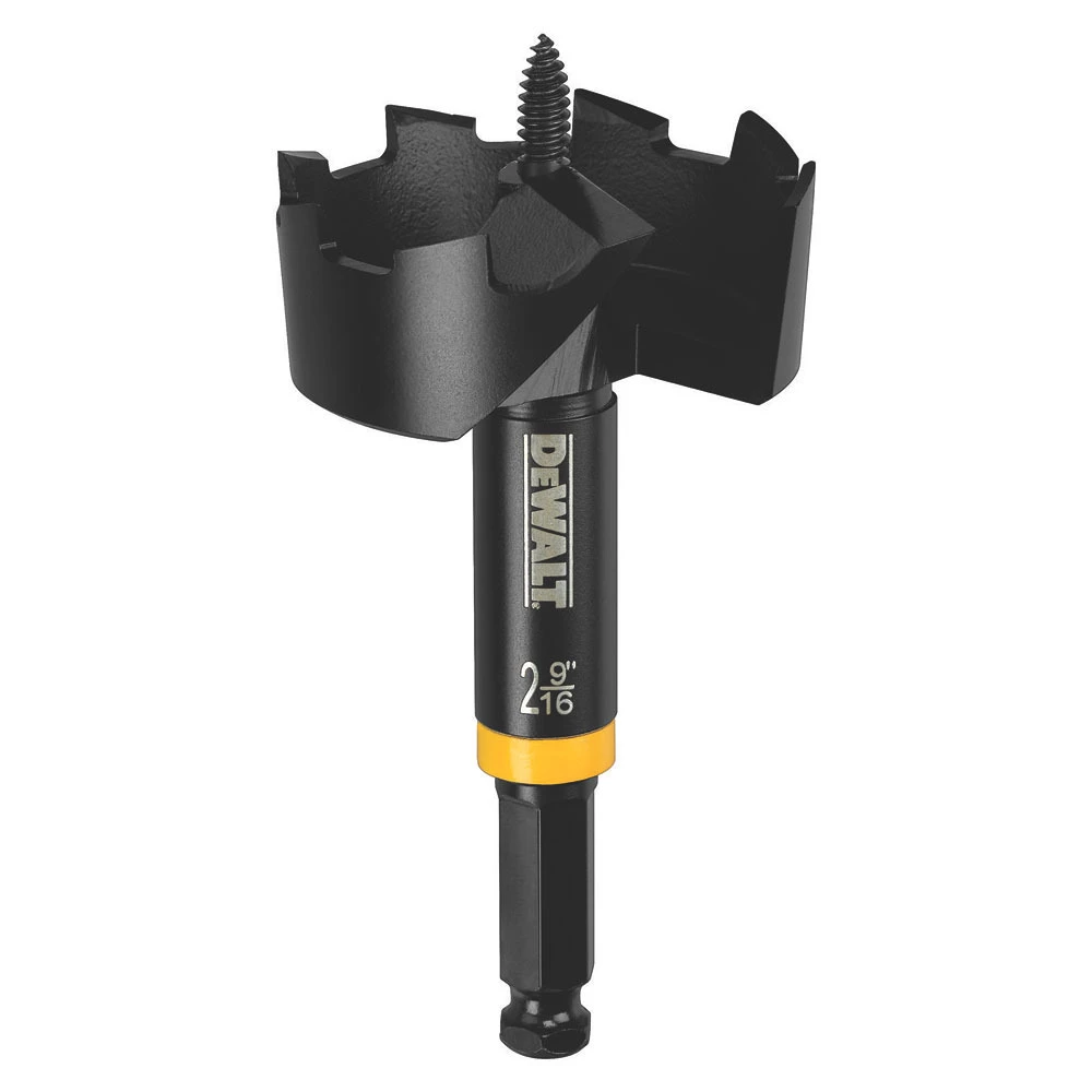 The DEWALT 2-9/16 In. heavy-duty self-feed bit is built to provide strength and speed in real-world drilling situations. The two cutter design reduces binding and stalling, which can slow down jobsite productivity. The self-feeding screw provides material penetration that’s fast enough for larger jobs. You never need to stop working to reset the bit because the 7/16 In. shank comes equipped with shank flats that completely eliminate bit slipping in the drill chuck. Like all DEWALT products, the 2-9/16 In. heavy-duty self-feed bit lets you improve productivity without sacrificing quality.