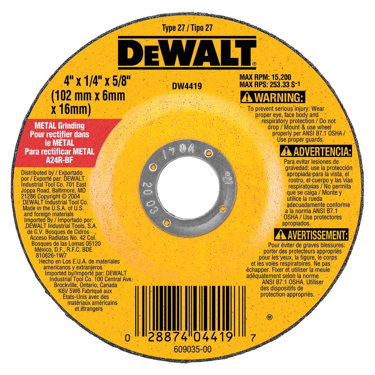 Crafted from high-performance aluminum oxide grain for durability and optimal material removal, DEWALT type 27 HP metal grinding wheels grind and shape a variety of metals and non-ferrous materials. High grain concentration for aggressive grinding action and smooth-running wheels.