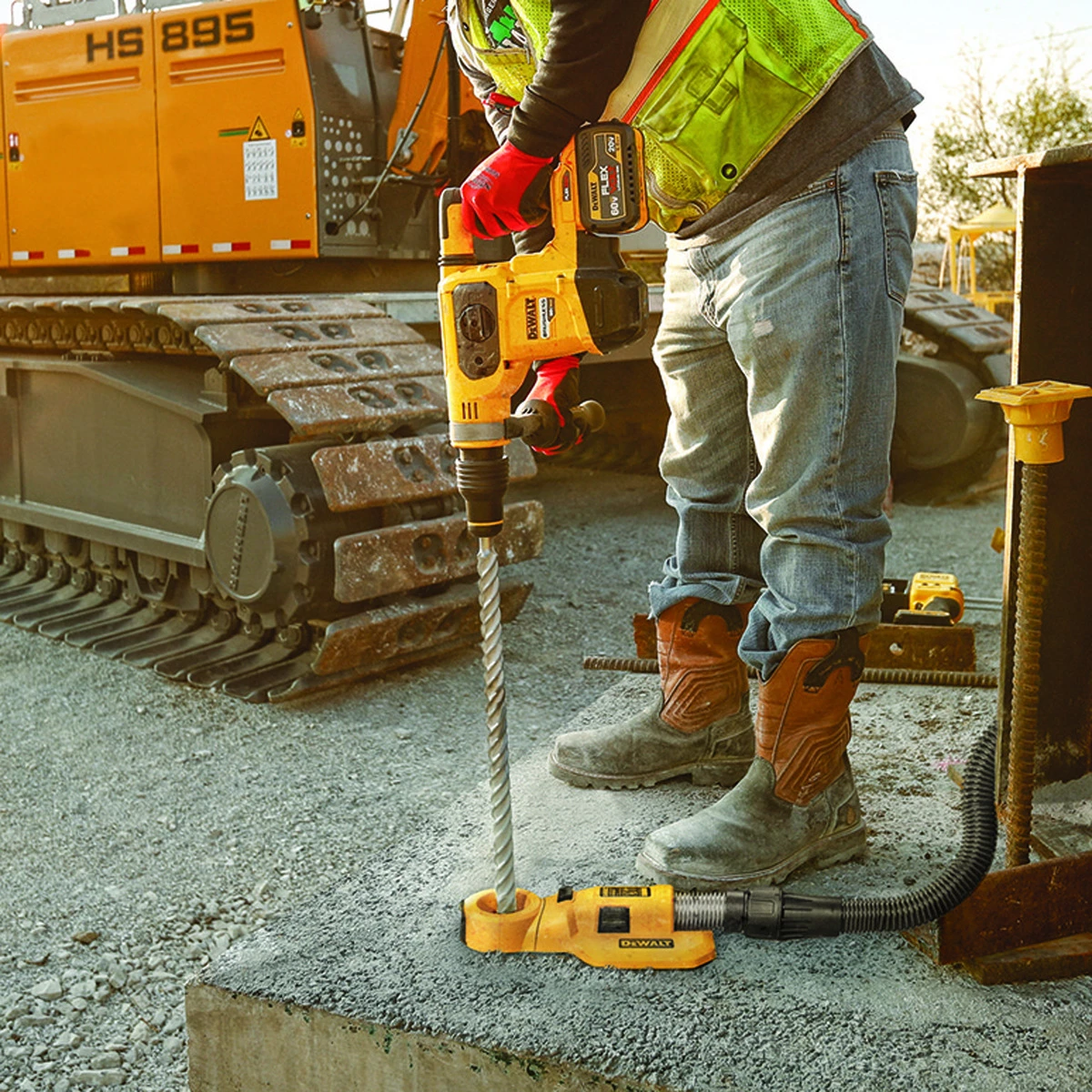 - 2 interchangeable drilling heads for optimum dust removal; one for holes up to 1-1/2-in and one for holes up to 2-in