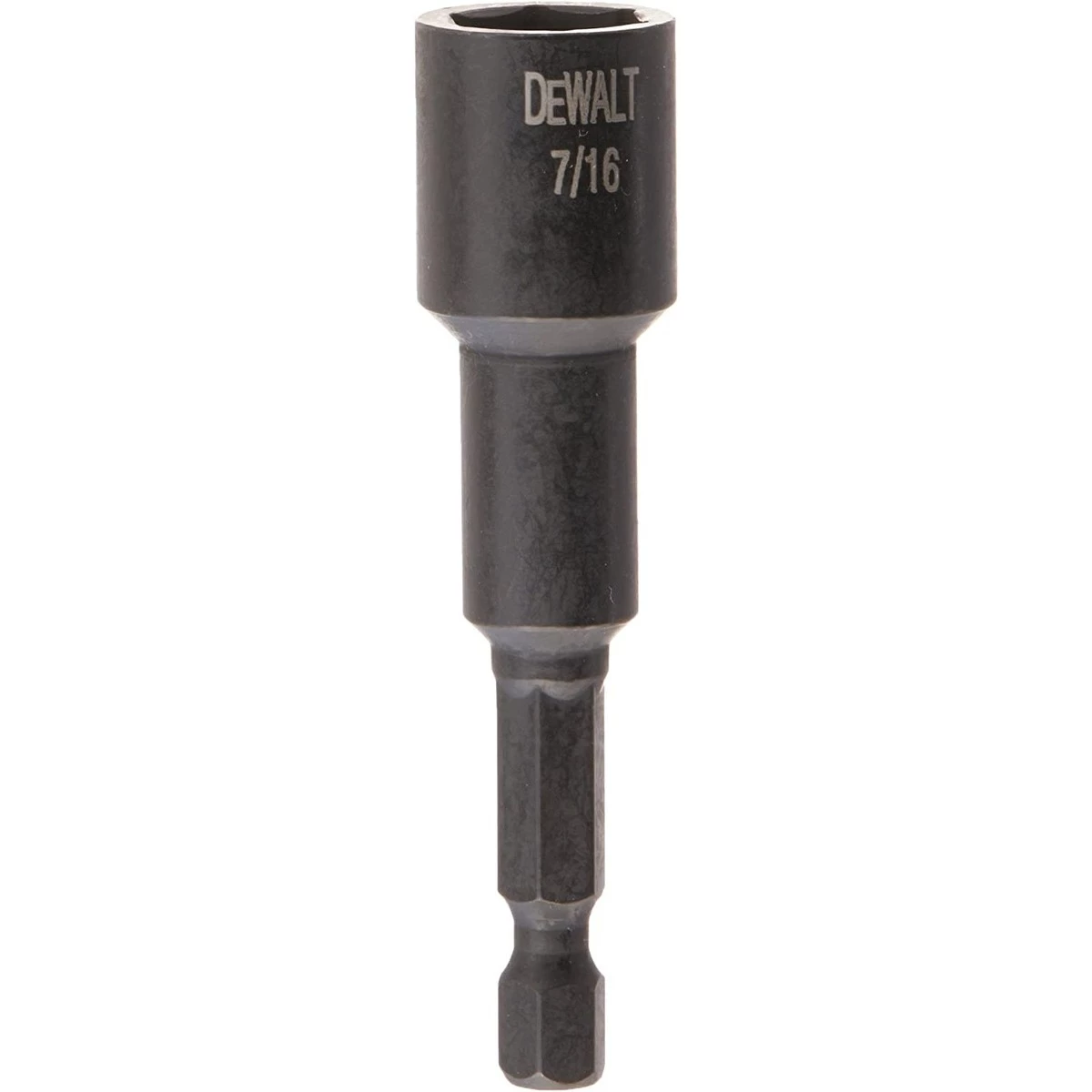 The DEWALT 7/16 In. x 2-9/16 In. magnetic nut driver is designed to perform at a professional standard in impact drivers and wrenches. With its recessed corners, the nut driver can be used on flats, minimizing shavings and allowing you to maintain a professional work area. This nut driver pivots up to 20 Degree so you can use it without hassle even in tight spaces and corners. DEWALT tools are designed to inspire confidence, and with its industrial strength magnet you can be confident that this nut driver will stay in place when you need it to.