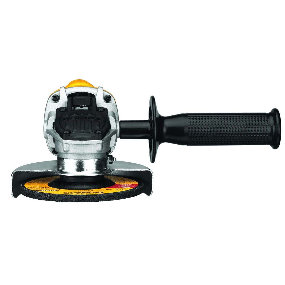 DEWALT 7 Amp 12,000 RPM paddle switch small angle grinder. Quick-Change Wheel release allows tool free wheel removal without need for a wrench. 2-position removable side handle provides increased comfort and control. Slim, ergonomic body design provides increased comfort in extended use applications. 5/8 In. to 11 spindle thread accepts a wide range of 4-1/2 In. accessories.