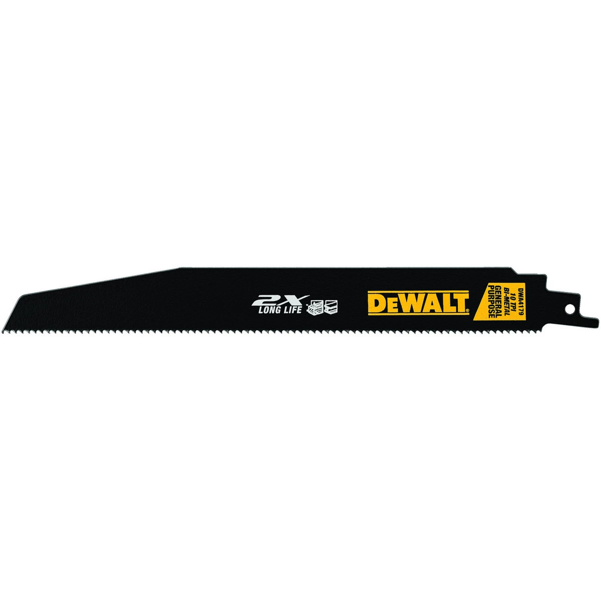 Featuring a tall, high-speed strip that helps to reduce breakage while maximizing tooth life, DEWALT 2X long life wood cutting reciprocating saw blades use a patented extra-sharp tooth design to deliver fast cuts. An aggressive shank angle helps to increase tooth contact, and a specially formulated anti-stick coating minimizes friction and gum-up.
