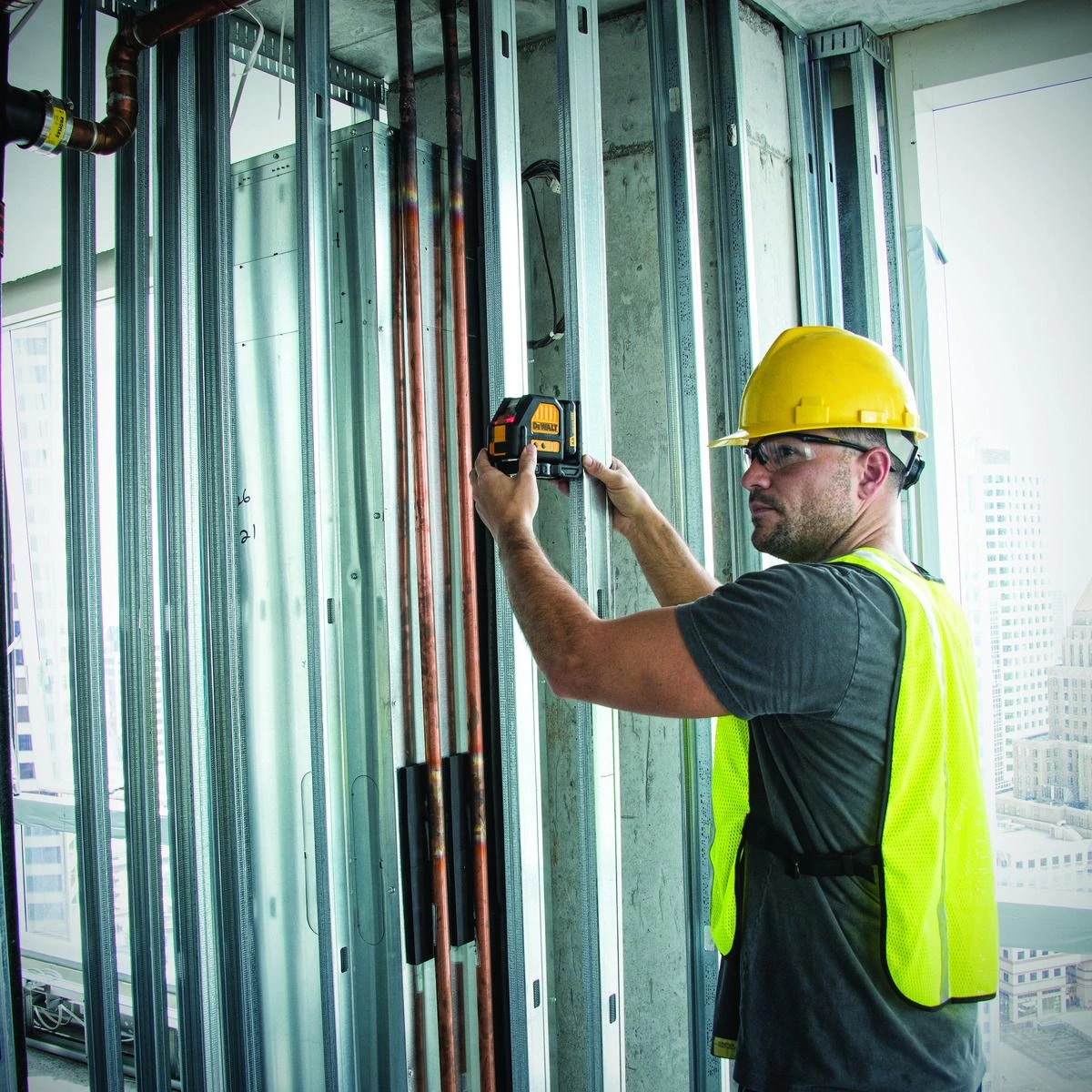 - Self leveling cross lines – projects bright crossing horizontal and vertical lines for various leveling and layout applications