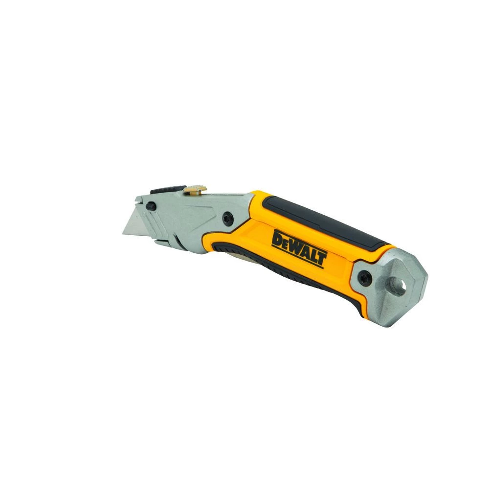 The DEWALT standard retractable utility knife offers the convenience of a retractable knife with a rugged metal body for a long tool life. Blade storage for constant access to new blades. Easy access button allows for quick blade changes.