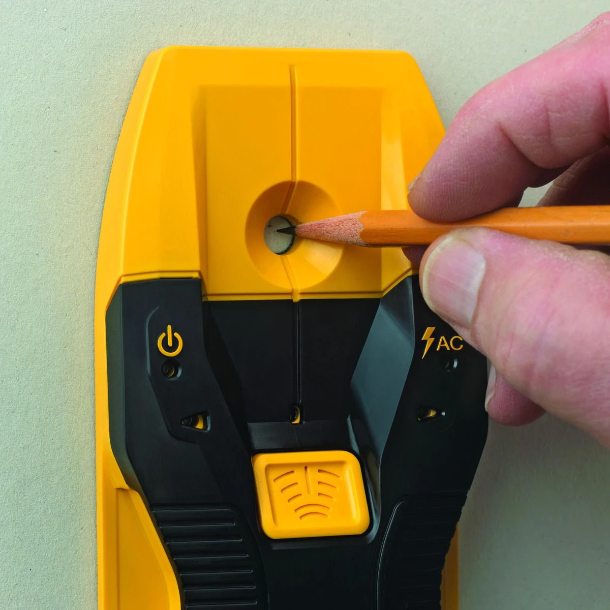Eliminate the guesswork with this new center sensor stud finder that has a detection depth of 3/4 in. for wood and metal. While traditional stud sensors locate the edge of the stud, this one locates the center for a more efficient read, even when held at an angle. The sensor is constantly calibrating to save time during use. Once the stud is located, an audible alert and directional LED arrows clearly notify the user. You can easily mark the center of the stud with the center marking channel.