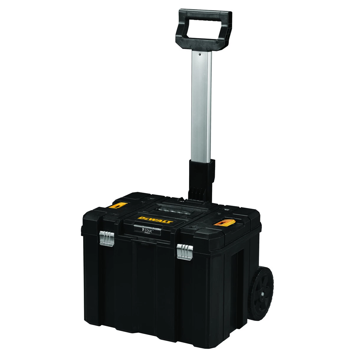 The DEWALT TSTAK mobile storage unit combines a large volume storage tool box with durable 7 In. wheels. With rust-resistant metal latches, bi-material top handle and side latches that allow stacking all other TSTAK units on top, this is a great maneuverability solution.The DEWALT TSTAK mobile storage unit combines a large volume storage tool box with durable 7 In. wheels. With rust-resistant metal latches, bi-material top handle and side latches that allow stacking all other TSTAK units on top, this is a great maneuverability solution.