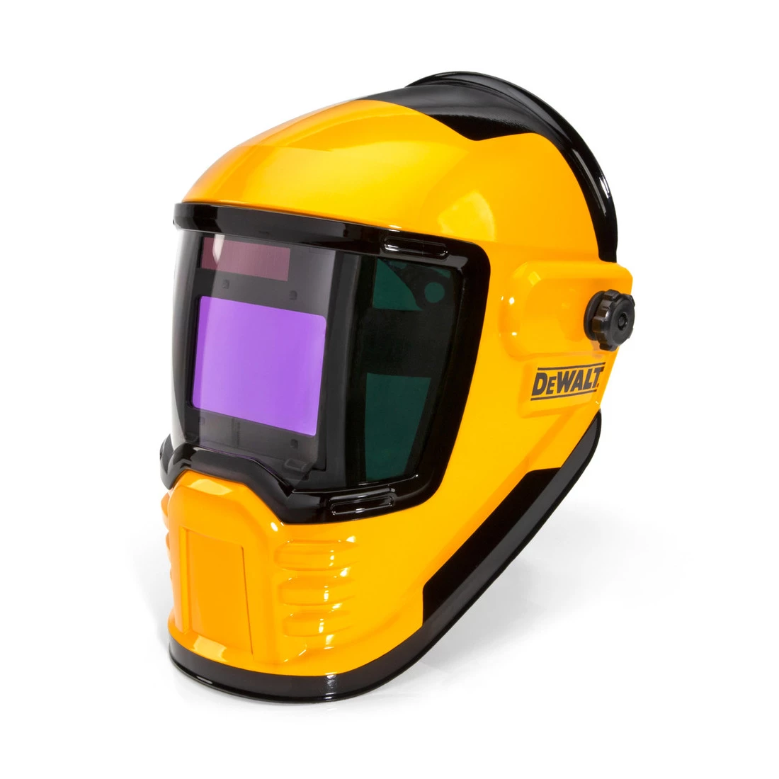 The DEWALT DXMF21011 Wide View Auto-Darkening Welding Helmet lets you protect your eyes against UV and IR light without limiting your view of your work. Two DIN 5 side lenses double the viewable area giving you a wide, almost panoramic view of your work and not just a small slice of it. Three different modes allow this 1/1/1/2 lens clarity welding mask to be used in multiple roles that require different levels of protection with a DIN 4 grinding mode, DIN 5-8 cutting mode, and a DIN 9-13 welding mode. The lightning fast auto-darkening filter is connected to 4 independent arc sensors that can engage in a mere 1/15,000th of a second. The sensors can additionally be tuned to be more or less sensitive to account for varying working conditions, whether outdoors in bright light / using heavy current or in dark areas / using low current and you can even customize the lightening delay from 0.2 seconds to 1.0 second. To protect the delicate electronic filter, this helmet features both a large exterior lens and a smaller interior lens to prevent damage from slag, sparks, and more. To protect you, the entire helmet’s outer shell is rated ANSI Z87+ for impact protection to keep you safe from high speed flying slag and metal debris. For lasting comfort during wear, the mask is attached to a multi-point adjustable rig with an integrated sweat band so you can stay comfortably focused without having to stop and adjust or wipe sweat from your eyes right when you hit your stride.
