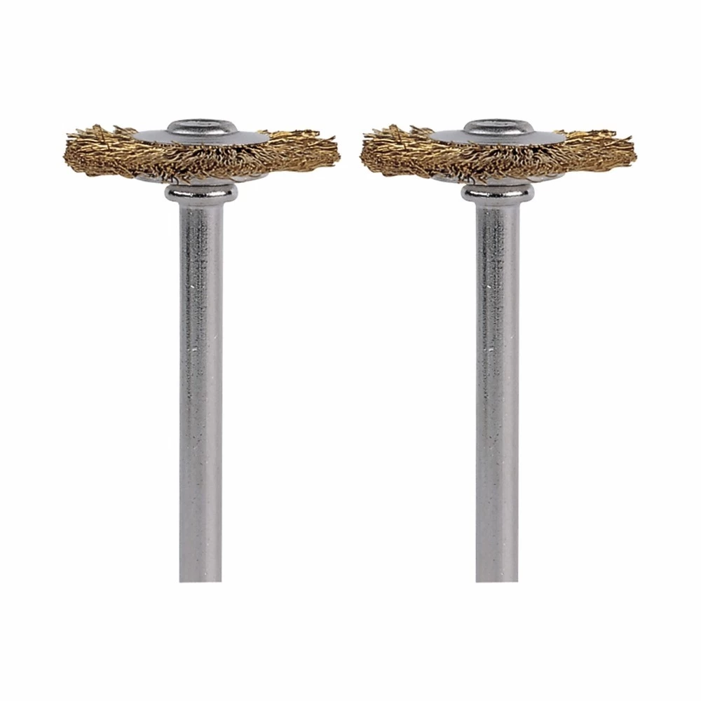 Perfect for cleaning flat surfaces and getting into hard-to-reach places, the versatile 3/4 In. (19.1 mm) diameter Brass Brushes are ideal for cleaning and surface polishing to create a soft, satin or matte finish. Non-sparking and softer than steel, the brushes are ideal for use on soft metals like gold, bronze, copper or brass. Pack includes two brass brush accessories.