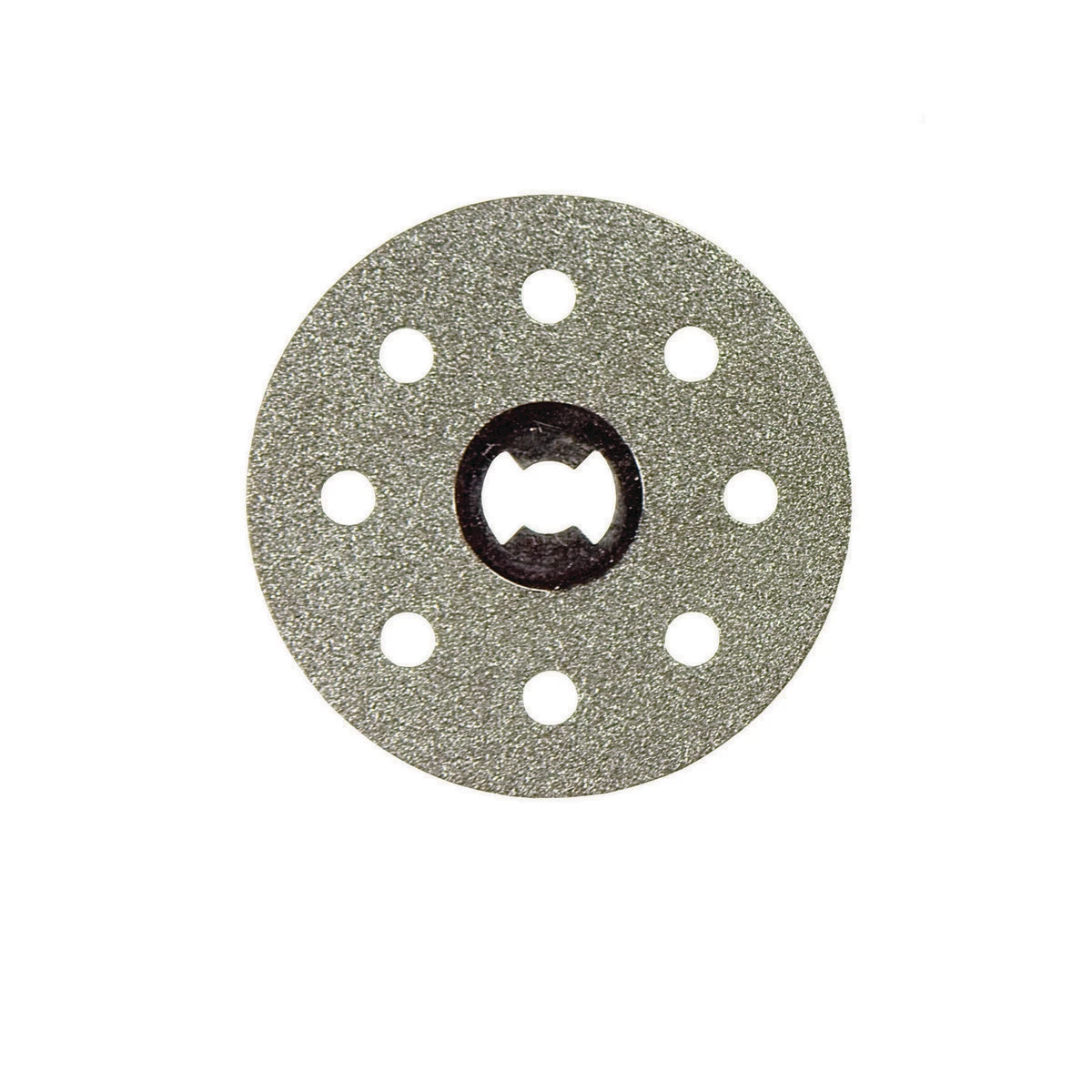 Completely coated with fine diamond particles for working with hard materials. The diamond coating on the EZ545 Diamond Wheel adds durability and longevity, while producing smooth & fine cuts. Holes in the face of the wheel keep it cool during use. The Diamond Wheel features 1-1/2 In. (38.1mm) diameter making it ideal to cut, saw, and carve in hard materials such as marble, concrete, brick, porcelain, ceramics, hard epoxy, and soft or hardwood. The cutting wheel is designed with the patented EZ Lock system making accessory changes quick and easy. For use with the EZ402 mandrel.