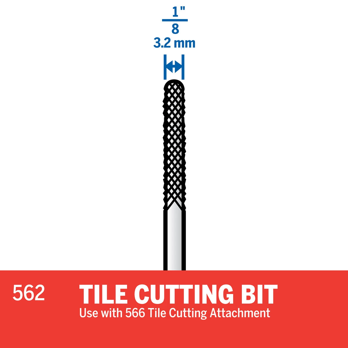 Our powerful tile cutting tool is ideal for shaping ceramic wall tile around bathroom or kitchen fixtures or plumbing pipes. If you’re feeling creative, you can even use the tool to create tile mosaics or a decorative design in your tiles. The 562 Tile Cutting Bit features a 1/8 In. (3.2mm) diameter and is designed to cut ceramic wall tile (no floor tile), cement board & plaster. Can be used with the 566 Tile Cutting attachment.