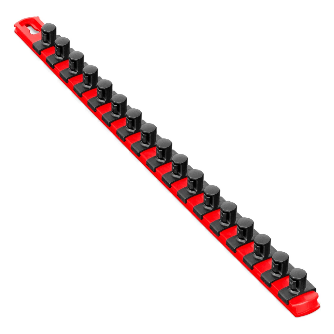 Ernst Twist Lock Socket Rails are an easy to use transportable solution for keeping sockets organized. Socket clips click into place, can be easily repositioned and installed between previously placed clips. End stops on each end of the socket organizer keep socket clips securely fastened. No other socket storage item on the market will provide this amount of options. Integrated design will work with other great products from Ernst. 96 ID stickers are included with each organizer for easy tool identification. US Patents 6,637,605 and 8,770,418.