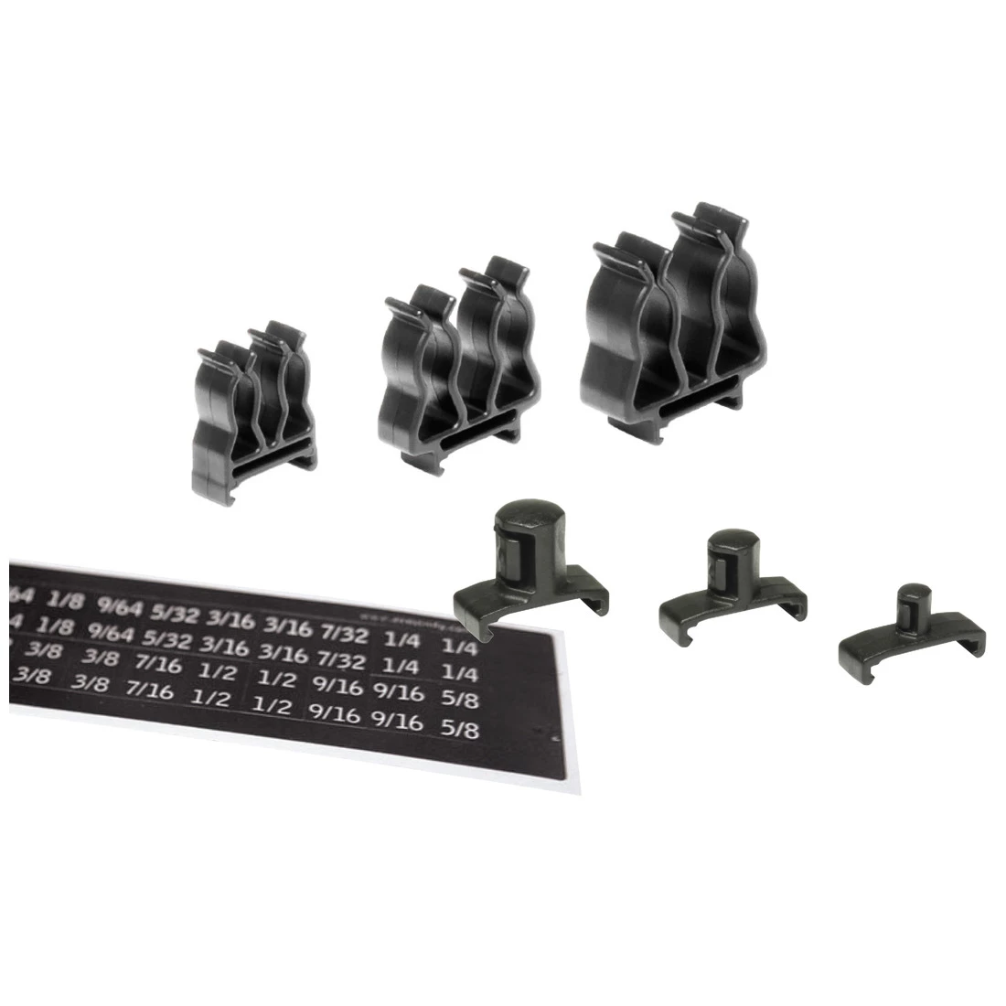 With a simple twist your sockets are firmly secured in a locked position. Twist in the reverse direction and your sockets are free to remove. The tension is a perfect medium so you do not have to fight with your sockets to lock them into place and you dont have to worry about them being too loose. Just a simple 1/8 turn and your tools are secured. Ideal for secure transport of your sockets as well as convenient toolbox storage. Add, remove, and insert clips on any portion of the socket rail to fit your custom set of tools. Socket clips click into place, can be easily repositioned and installed between previously placed clips. Ratchet and Extension Holders securely hold a wide range of ratchets and extensions. Simply clip into place on the Socket Rail. Includes 1/4, 3/8 and 1/2 Face Mount Ratchet & Extension Holders, 15 each of Dura-Pro Twist Lock 1/4, 3/8 and 1/2 Socket Clips, and Socket ID Stickers. US Patent 8,770,418.