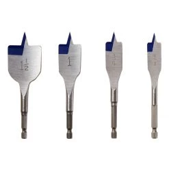 The improved SPEEDBOR Spade Bits now last 2X Longer and cut 2X Faster. Next-generation SPEEDBOR Spade Bits feature a chamfered cutting edge for durability in cutting wood and optimized point tip that is wider and longer than previous IRWIN spade bits to minimize splintering and control speed. Patented Blue-Groove cutting edge allows for a large cutting area for aggressive removal of wood chips and fast drilling.