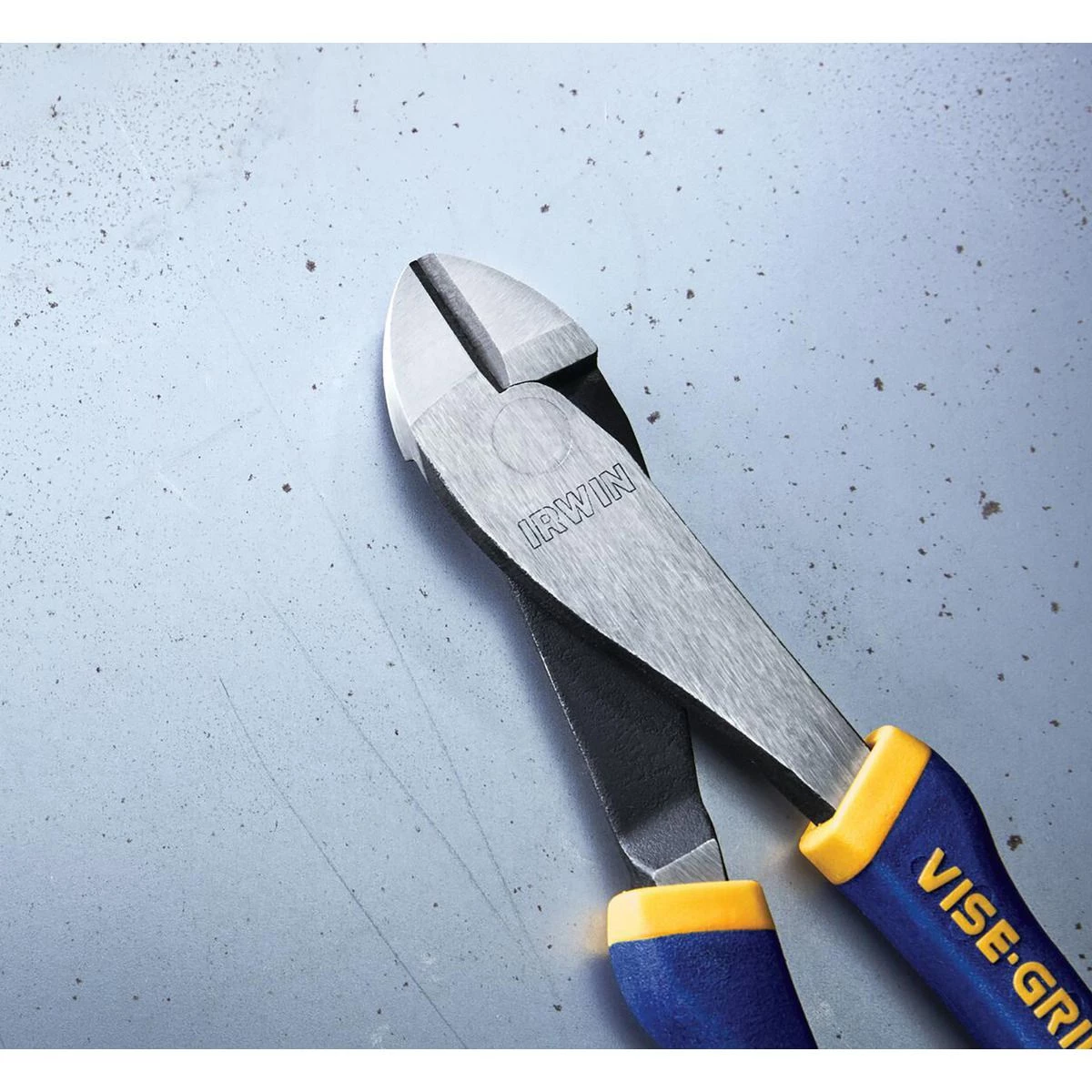 The IRWIN VISE-GRIP Diagonal Cutting Pliers are constructed of durable nickel chromium steel with an induction-hardened cutting edge that stays sharper longer than traditional cutting edges. These pliers are fitted with non-slip ProTouch grips for increased comfort and reduced hand fatigue. Backed by the IRWIN Lifetime Guarantee, they meet or exceed ANSI specifications.