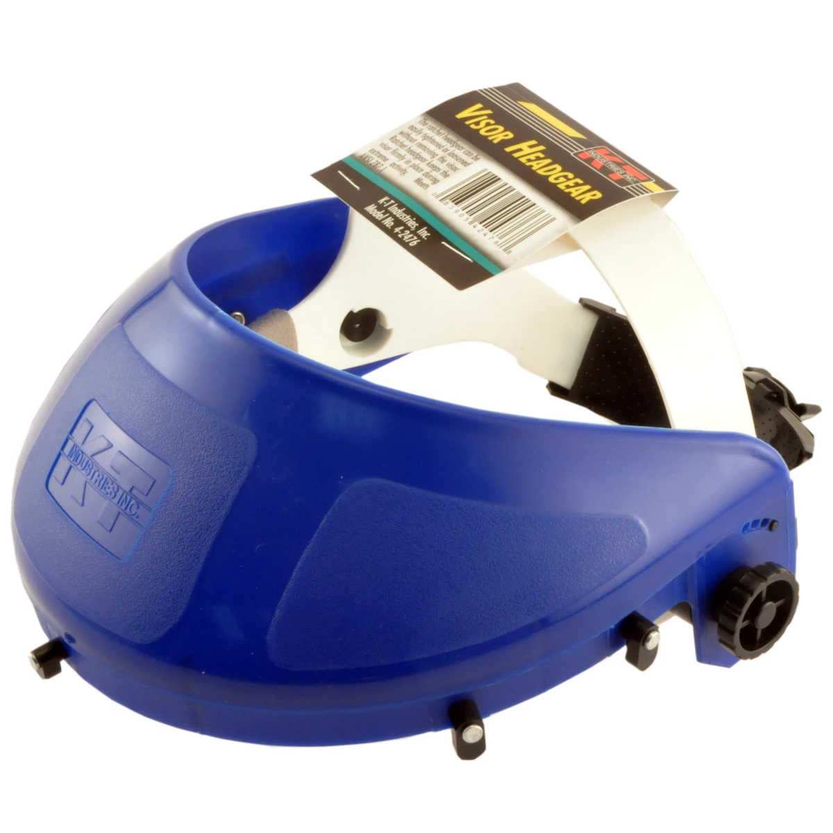 The ratchet headgear can be adjusted to 27 sizes. Easily tightened or loosened without removing the visor. Pivot tabs relieve pressure on temples. Soft vinyl sweatband. Adjustable headgear tension and crown strap adjust to four different height positions. Use K-T visors shown below. Exchangeable with Jackson Morsafe, Huntsman, Norton and Bullard visors. Meets ANSI Z87.1.
