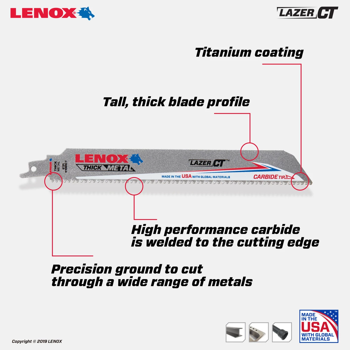 Carbide tipped for the highest performance of LENOX reciprocating blades in cast iron and stainless steel. High performance carbides are welded to increase durability and prevent tooth loss.