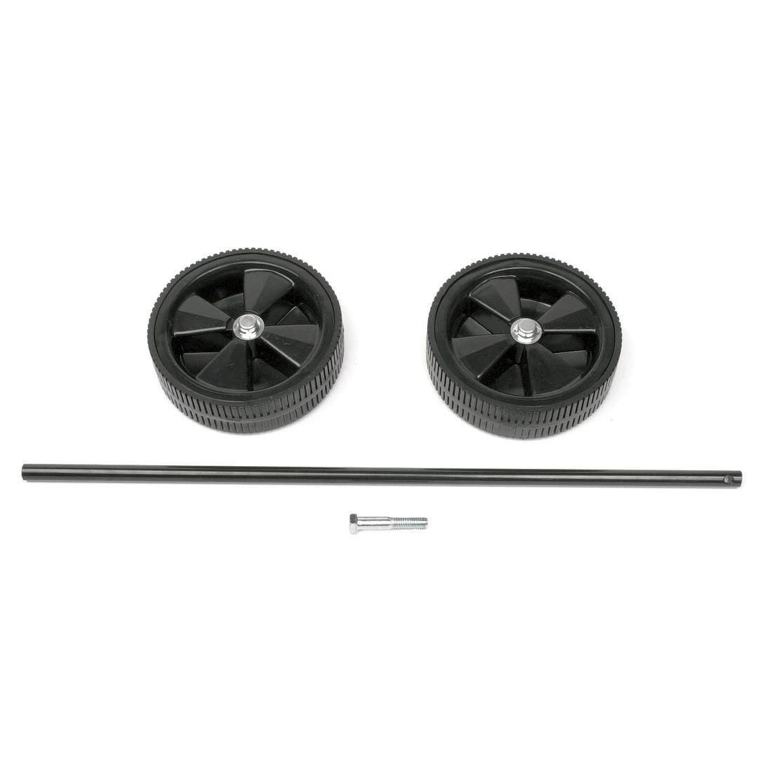 - Includes axle, two wheels, and assembly hardware