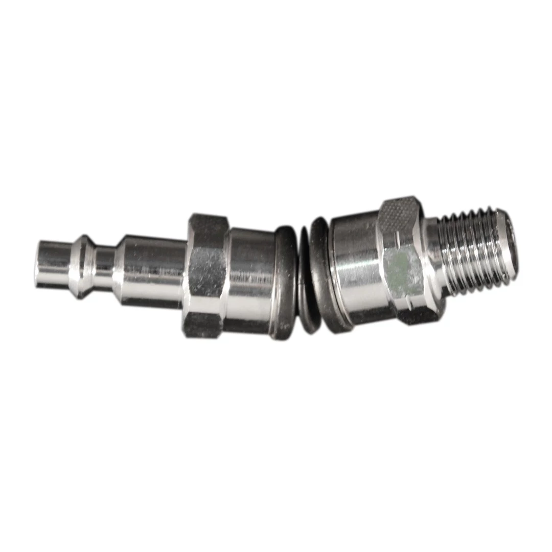 1/4″ MNPT variable angle swivel M style plug rotates 360 degrees at a 45 degree angle in any direction, virtually eliminating hose twisting and kinking. Rubber dust cover keeps dirt and moisture out. Fitting has a 1/4″ basic flow size and air flow of 40 SCFM.