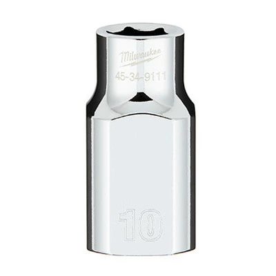 The Milwaukee1/2″ Drive 10mm Metric 6-Point Socket with FOUR FLAT Sides was designed from the ground up to be part of the most versatile socket family. The 1/2″ drive sockets are wrench-ready and feature an innovative design with four parallel flat sides to deter rolling. Metric socket sizes are stamped into the flats for better visibility. Optimized socket geometry helps reduce bolt rounding and stripping.