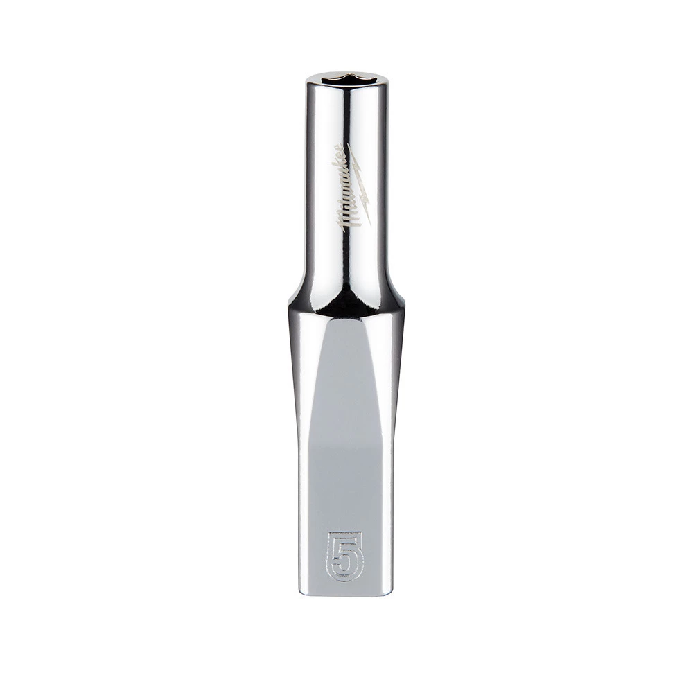 The Milwaukee 1/4 in. drive 5mm metric 6-point deep socket was designed from the ground to be part of the most versatile socket family. The innovative socket design has four parallel flat sides, which deter rolling and are wrench-compatible. Socket sizes are stamped into the flats for improved easy-to-read visibility. Optimized socket geometry helps reduce bolt rounding and stripping.