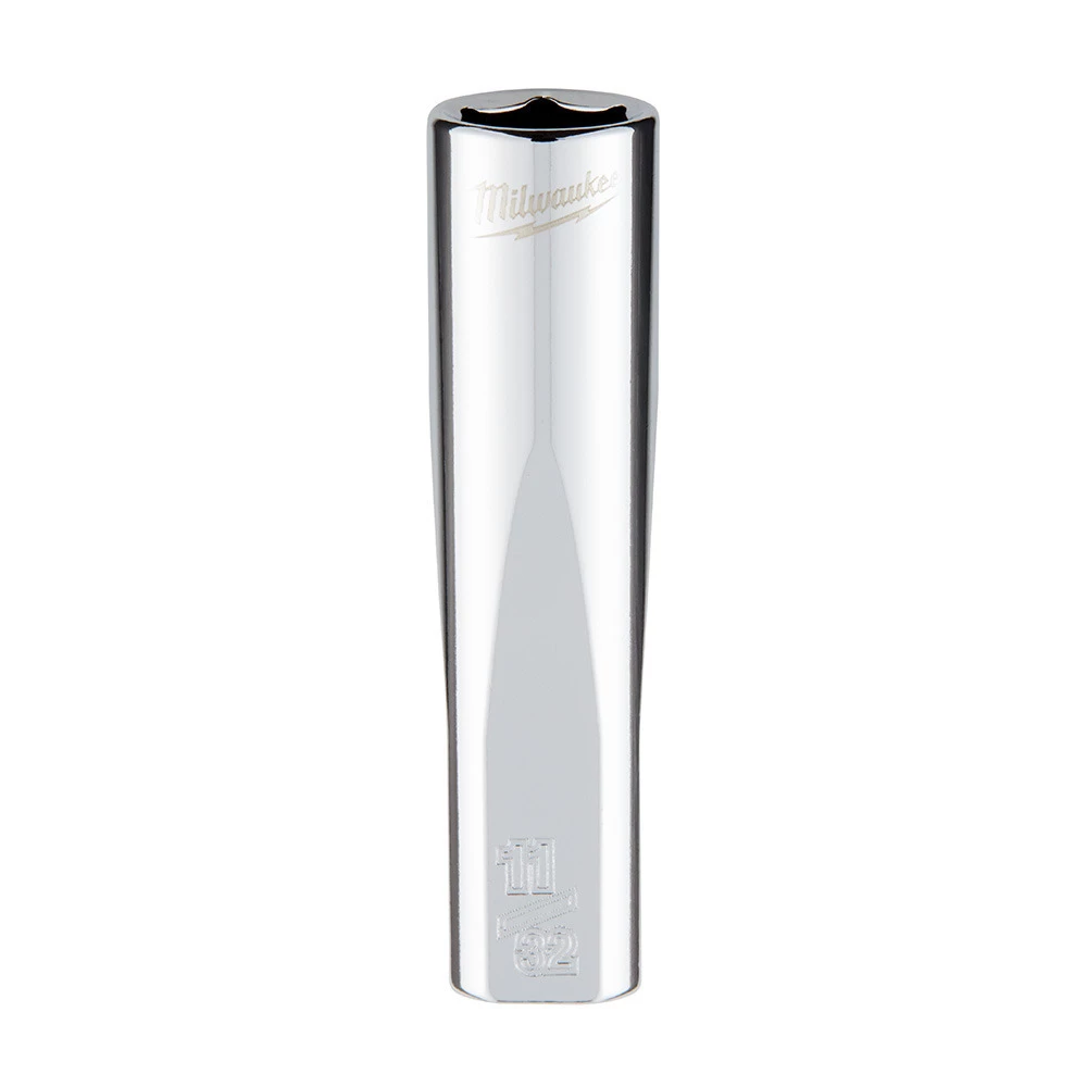 The Milwaukee 1/4 in. drive 11/32 in. SAE 6-point deep socket was designed from the ground to be part of the most versatile socket family. The innovative socket design has four parallel flat sides, which deter rolling and are wrench-compatible. Socket sizes are stamped into the flats for improved easy-to-read visibility. Optimized socket geometry helps reduce bolt rounding and stripping.