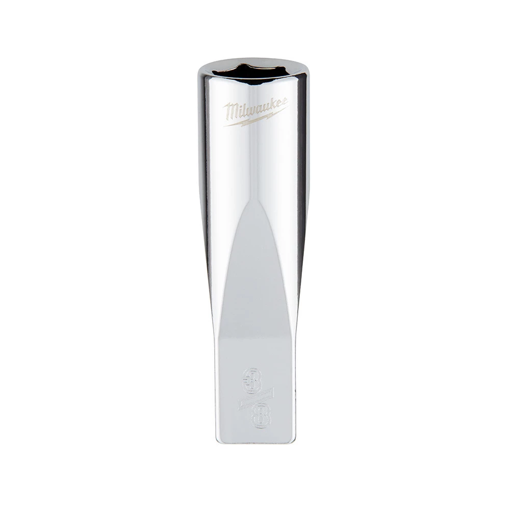 The Milwaukee 1/4 in. drive 3/8 in. SAE 6-point deep socket was designed from the ground to be part of the most versatile socket family. The innovative socket design has four parallel flat sides, which deter rolling and are wrench-compatible. Socket sizes are stamped into the flats for improved easy-to-read visibility. Optimized socket geometry helps reduce bolt rounding and stripping.