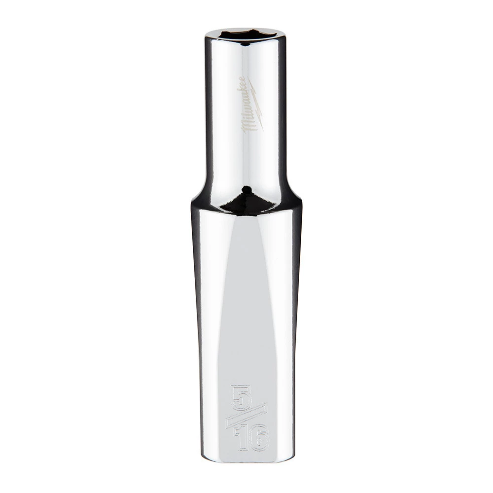 The Milwaukee 3/8 in. drive 5/16 in. SAE 6-point deep socket was designed from the ground to be part of the most versatile socket family. The innovative socket design has four parallel flat sides, which deter rolling and are wrench-compatible. Socket sizes are stamped into the flats for improved easy-to-read visibility. Optimized socket geometry helps reduce bolt rounding and stripping.