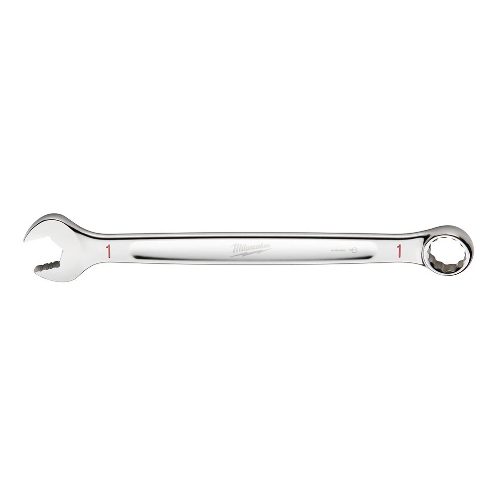 The Milwaukee1 in. SAE Combination Wrench gets 25% more torque than smooth-faced wrenches with its MAXBITE Open-End Grip. In addition to providing increased torque, MAXBITE reduces rounding and stripping of nuts and bolts. This wrench is built from the ground up with an I-Beam handle for optimized comfort and durability. Ink-filled size labels allow for easy size identification and quick distinction between SAE and metric sets. The Milwaukee1 in. SAE Combination Wrench features a Lifetime Guarantee.