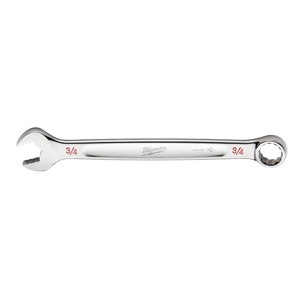 The Milwaukee3/4 in. SAE Combination Wrench gets 25% more torque than smooth-faced wrenches with its MAXBITE Open-End Grip. In addition to providing increased torque, MAXBITE reduces rounding and stripping of nuts and bolts. This wrench is built from the ground up with an I-Beam handle for optimized comfort and durability. Ink-filled size labels allow for easy size identification and quick distinction between SAE and metric sets. The Milwaukee3/4 in. SAE Combination Wrench features a Lifetime Guarantee.