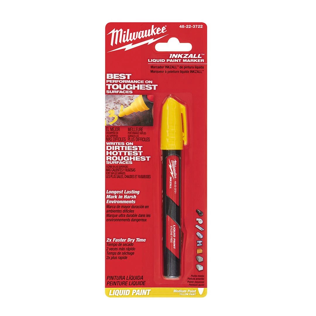 Milwaukee INKZALL liquid paint markers were designed from the ground up to provide users with the best performance on tough jobsite surfaces. All INKZALL liquid paint markers feature a durable acrylic nib that can write on the dirtiest, hottest and roughest of surfaces. Proprietary paint developed specifically for INKZALL liquid paint markers can mark on surfaces up to 300F and dries in 10 seconds. For the most demanding environmental conditions, INKZALL liquid paint markers provide the longest lasting marks that are both water and UV resistant.