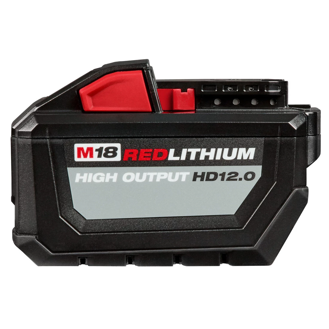 The M18 REDLITHIUM HIGH OUTPUT HD12.0 battery pack provides 50% more power and runs 50% cooler vs M18 REDLITHIUM HD battery packs. The massive increase in power elevates the performance of the entire M18 system and drives the next breakthrough in M18 FUEL, generating the power of 15 A corded product. It delivers fade free power and runs substantially cooler through heavy applications, allowing tradesmen to push their cordless tools harder and longer than ever before. The M18 REDLITHIUM HIGH OUTPUT HD12.0 is the best performing cold weather pack ever made, providing increased power in extreme cold weather conditions (below 0F / -18C). It provides the most work per charge of any professional power tool battery in the industry, driving full corded replacement on the jobsite. The REDLITHIUM HIGH OUTPUT HD12.0 battery is fully compatible with 150+ M18 solutions.