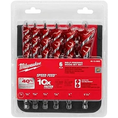 SPEED FEED self-feeding wood bits are made for drilling fast holes in clean wood. The double wing spurs cut clean holes for feeding wire or bolts through, and the feed screw and dual cutting edges provide up to 10 times faster drilling vs. flat boring bits.