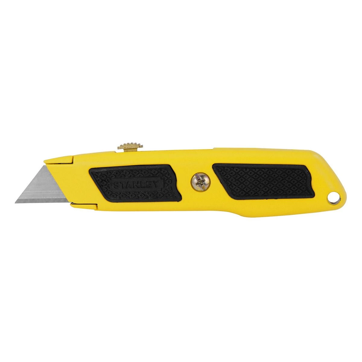 The Stanley DynaGrip retractable utility knife starts sharper and stay sharper than standard heavy-duty blades. This knife features a cushion grip surface for comfort even in extreme temperatures. A slip-resistant grip prevents slipping even on angled surfaces. The 5-5/8 In. handle has a patented interlocking nose to secure the blade. Furnished with three no. 11-921 utility blades, this utility knife comes with Stanley’s limited lifetime warranty.