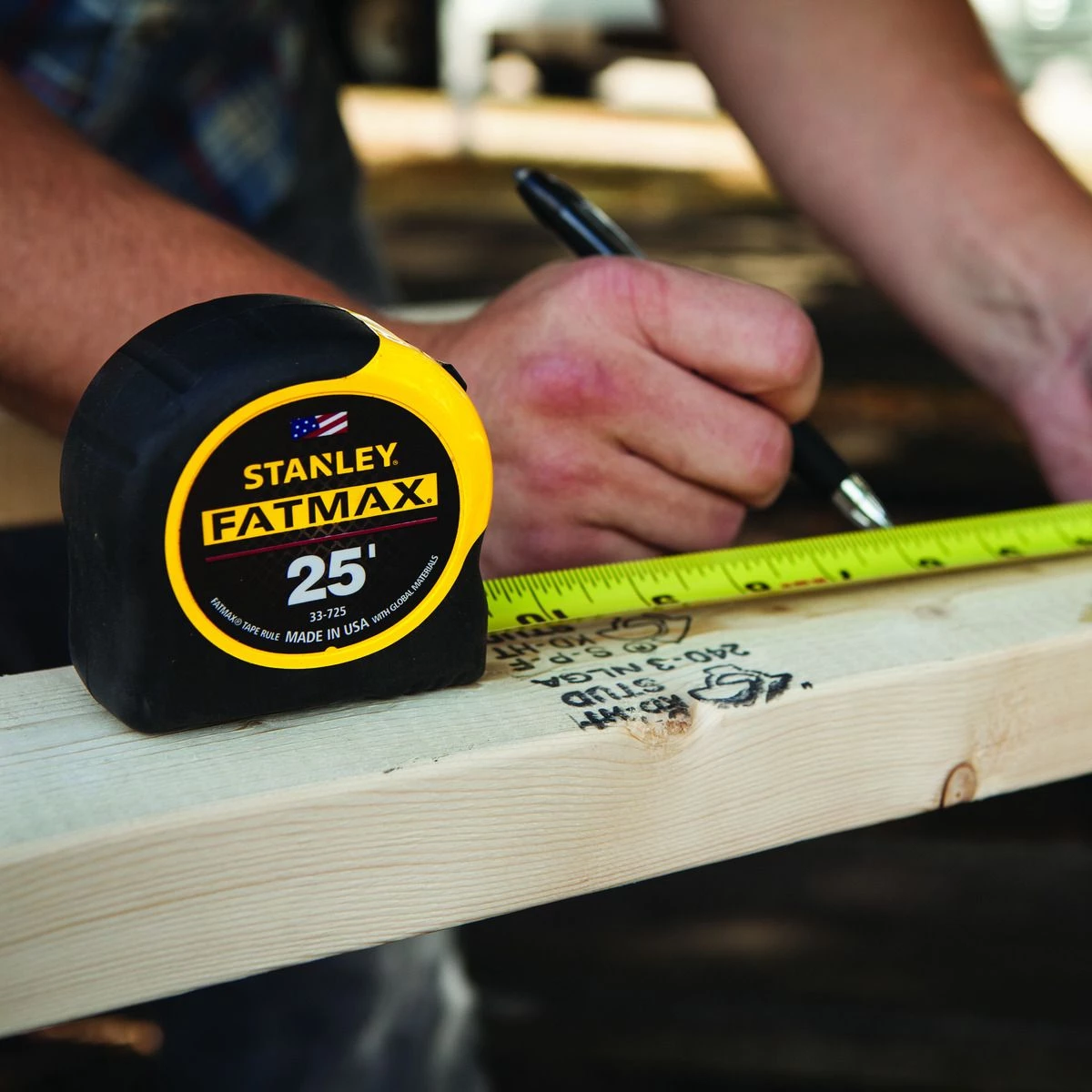 The Stanley FatMax 25 ft. tape measure is extra tough and durable thanks to industrial-grade blade armor coating on the first 3 in. and a high-impact ABS case. Large, easy to read numbers and standard stud markers assure accuracy with the STANLEY FATMAX Classic tape measure. Stands up to abrasion and repeated use with durable full tape blade coating.